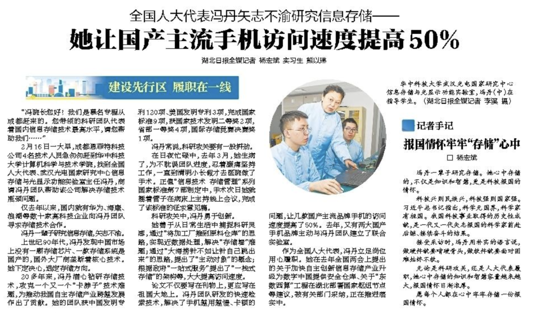 全国人大代表冯丹:矢志不渝研究信息存储 报国情怀牢牢“存储”心中