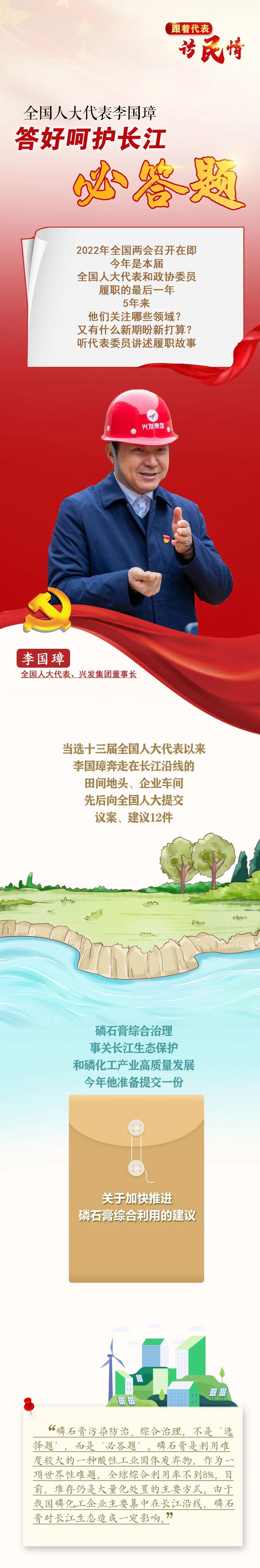 “人大代表是一份沉甸甸的责任与担当。”李国璋将代表履职与本职工作相结合,带领全国最大的精细磷化工企业探索和实践,努力蹚出一条磷石膏综合治理新路子。