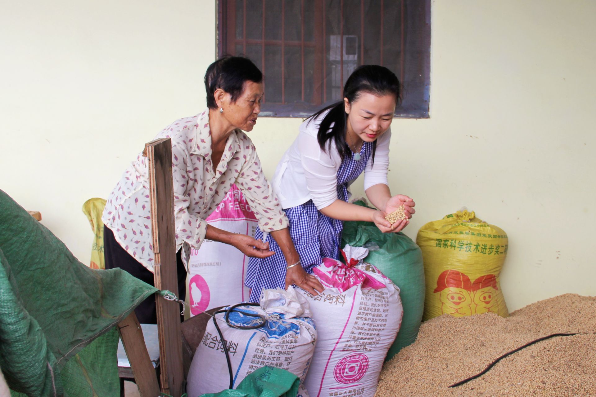 杨爱兰在董家湾村淡昭军家查看农作物收成