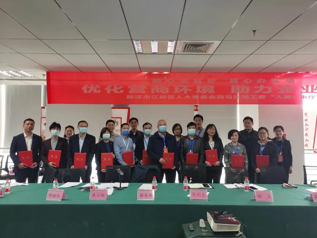 2021年4月25日,10名来自武汉市江岸区不同行业的人大代表接过红彤彤的聘书,成为江岸区西马街道首批优化营商环境特邀监督员。他们将以人大代表的身份,针对辖区内的政务环境、市场环境、法治环境开展全方位监督,收集、反映企业在办事过程中遇到的“堵点”,为进一步优化辖区营商环境受聘“挑刺”。