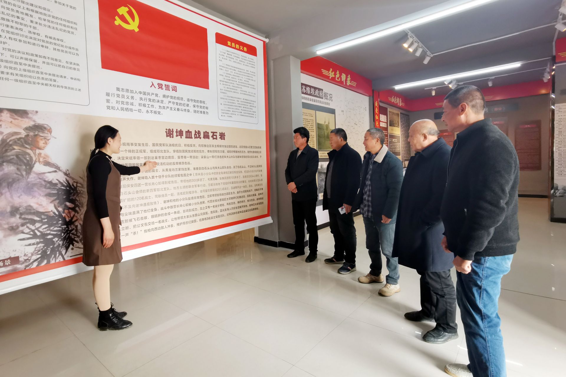 3月21日,革命苏区襄阳市襄州区黄龙镇文化站“薪火相传”红色文化展厅内,来自该镇的部分三级人大代表正在认真聆听讲解员讲解红九军26师成立的红色故事。这是该镇人大组织人大代表开展学党史教育活动的一个短镜头。