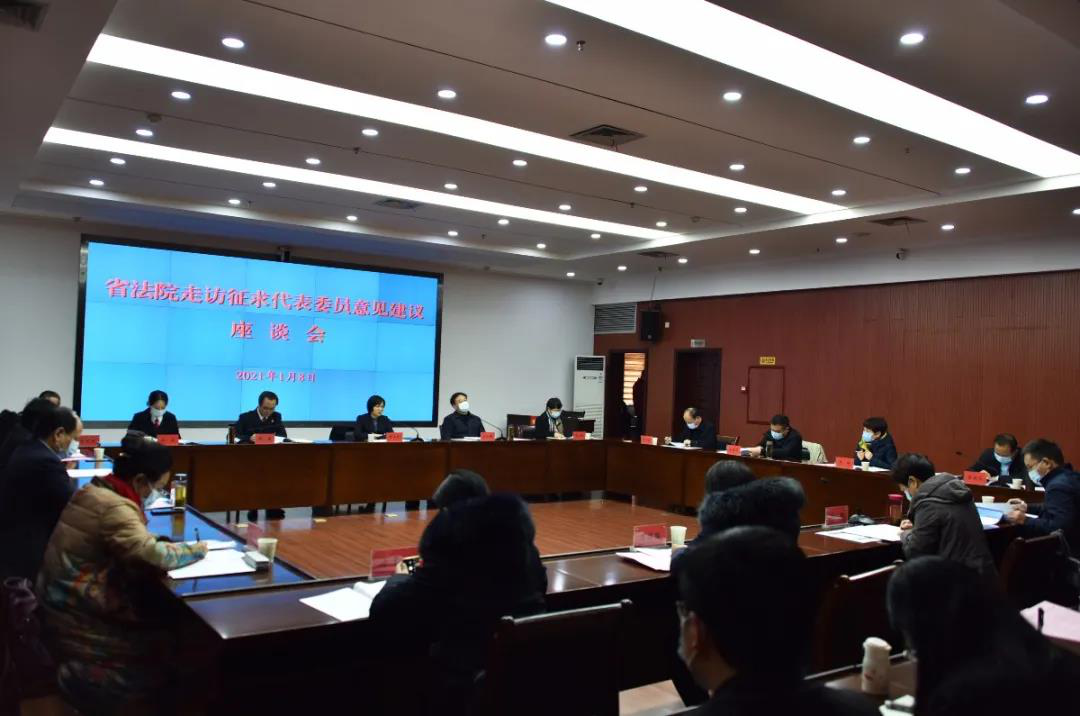 1月12日,省法院二级巡视员余平安带队到荆门召开座谈会,征求部分省人大代表、政协委员对法院工作的意见建议。