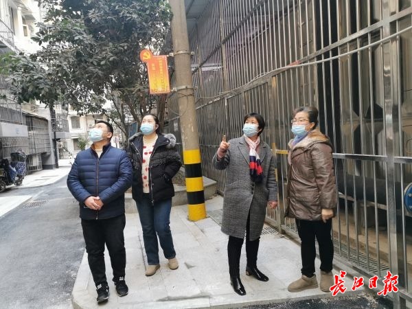 近日,江岸区人大代表刘革珍(右二)来到袁家社区,回访社区二次供水改造情况。 记者宋磊 摄