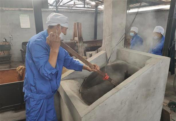 2018年,土榨坊开工生产,采用古法木榨油技术,将菜籽通过风车除杂、炒锅煸香、包饼进榨、木槌冲压、沉淀沥油等环节,榨出清香透亮的菜籽油。