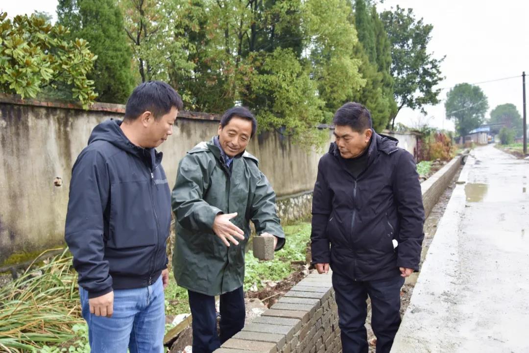 王能干(中)查看农田灌溉工程