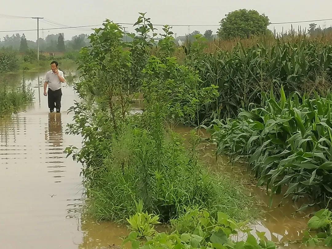 图 | 宋发明查看村内汛情(左一)