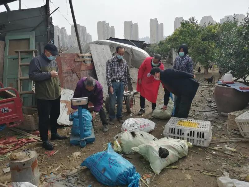 图 | 疫情期间,宋发明(右一)帮助留守老人销售三峡黑乌鸡