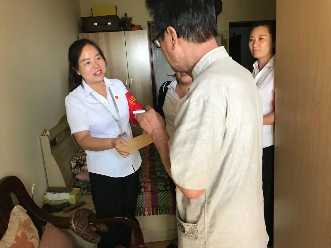图为桂小妹(左一)在居民家入户走访。(通讯员供图)