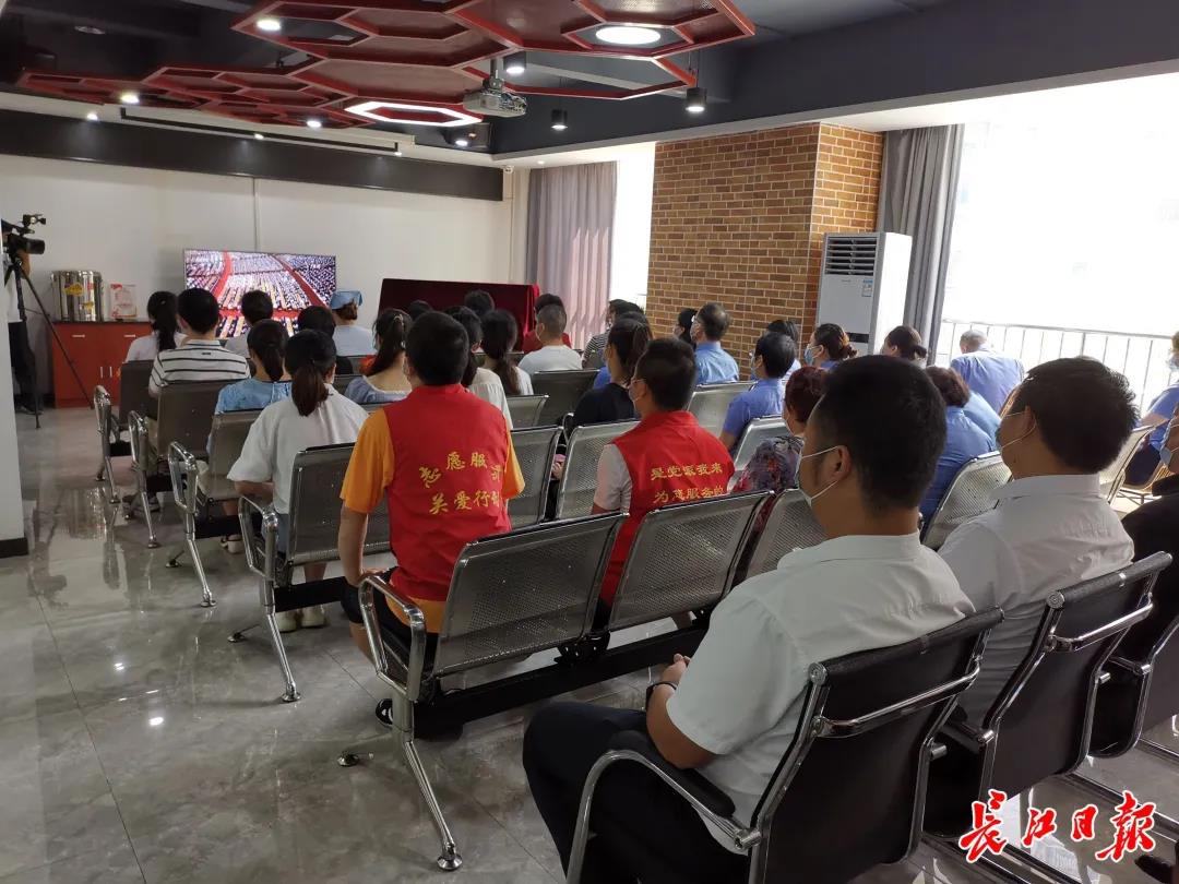 图为青和居社区党员群众及下沉党员观看表彰大会。(记者李锐 摄)
