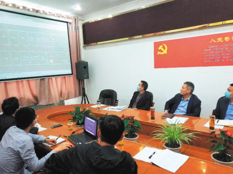 5月7日,罗杰(右二)与同事在十堰市西苑医院商定门诊楼改建方案