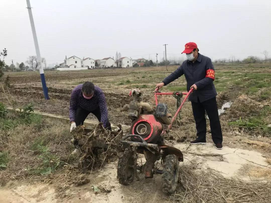 3月5日下午是个大晴天,陶咀村716亩冬闲田里一派繁忙的景象,10余位戴着口罩的村民,每人推着一台小型翻耕机在田里忙碌,当天就完成了全村90%的农田翻耕,准备种上早稻等作物。