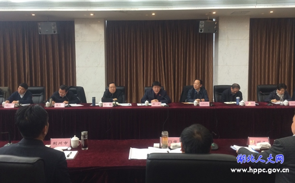 2014年12月3日王晓东常务副省长带领省直23个相关部门负责人赴潜江市调研汉江运河生态文化旅游城镇带建设,并召开现场办公暨重点建议办理工作会议。上午王省长一行冒雨到实地考察了今年9月份通水的兴隆水利枢纽工程和江汉运河。下午又在潜江市召开现场办公暨《关于将江汉运河生态文化旅游城镇带建设纳入省级战略支持的建议》办理工作会议,该建议系张桂华等20名省人大代表提出的,被王省长列为自己领办的重点建议。荆州、荆门、潜江和天门市市长先在会上汇报了各自推进江汉运河生态文化旅游城镇带建设情况,接着该建议的主、会办及有关单位:省发改委主任李乐成、国土资源厅长孙亚、交通厅长尤习贵、农业厅长戴贵洲等15个部门的主要负责人围绕支持江汉运河生态文化旅游城镇带建设,办理落实张桂华等代表提出的526号建议分别汇报了情况。会上以上四个市和荆州区、沙洋县政府主要负责同志还举行了合作协议签订仪式。整个会议,阵容齐备,限时发言,简洁高效。最后,王省长在热烈掌声中结束了重要讲话。省政府副秘书长程用文主持会议,省人大常委会副秘书长邵俊出席了会议。(岑少宏摄影报道)
