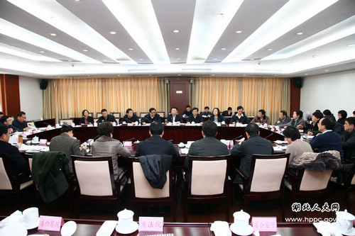 2月20日上午,省人大内务司法委员会召开内司委对口联系单位2013年度工作联席会。省人大常委会党组副书记、副主任赵斌出席会议并作了重要讲话,省人大内务司法委员会主任委员付明珠主持会议,省人大内务司法委员会副主任委员周厚震、张传读、张桂华、龚良柏、孙少衡和委员刘龙菊、刘江东、周宗奎、胡毓军出席了会议。参加会议的有省法院、检察院、公安厅、司法厅、国家安全厅、民政厅、监察厅、人社厅、编办、综治办、人防办、征兵办、老龄办、省军区、总工会、团省委、妇联、残联、武汉仲裁委的负责同志。