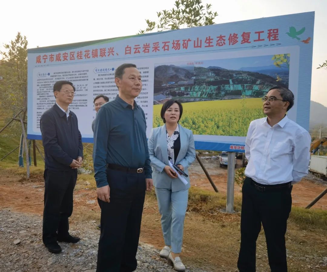 马国强来到咸安区向阳湖国家湿地公园、桂花镇联兴采石场矿山修复现场等地,实地察看自然资源保护和生态保护修复成效,与项目单位负责人深入交流,听取国有资产管理相关问题和建议。