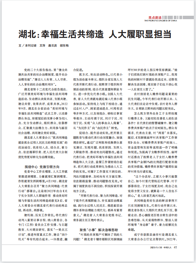 《中国人大》杂志|湖北:幸福生活共缔造 人大履职显担当