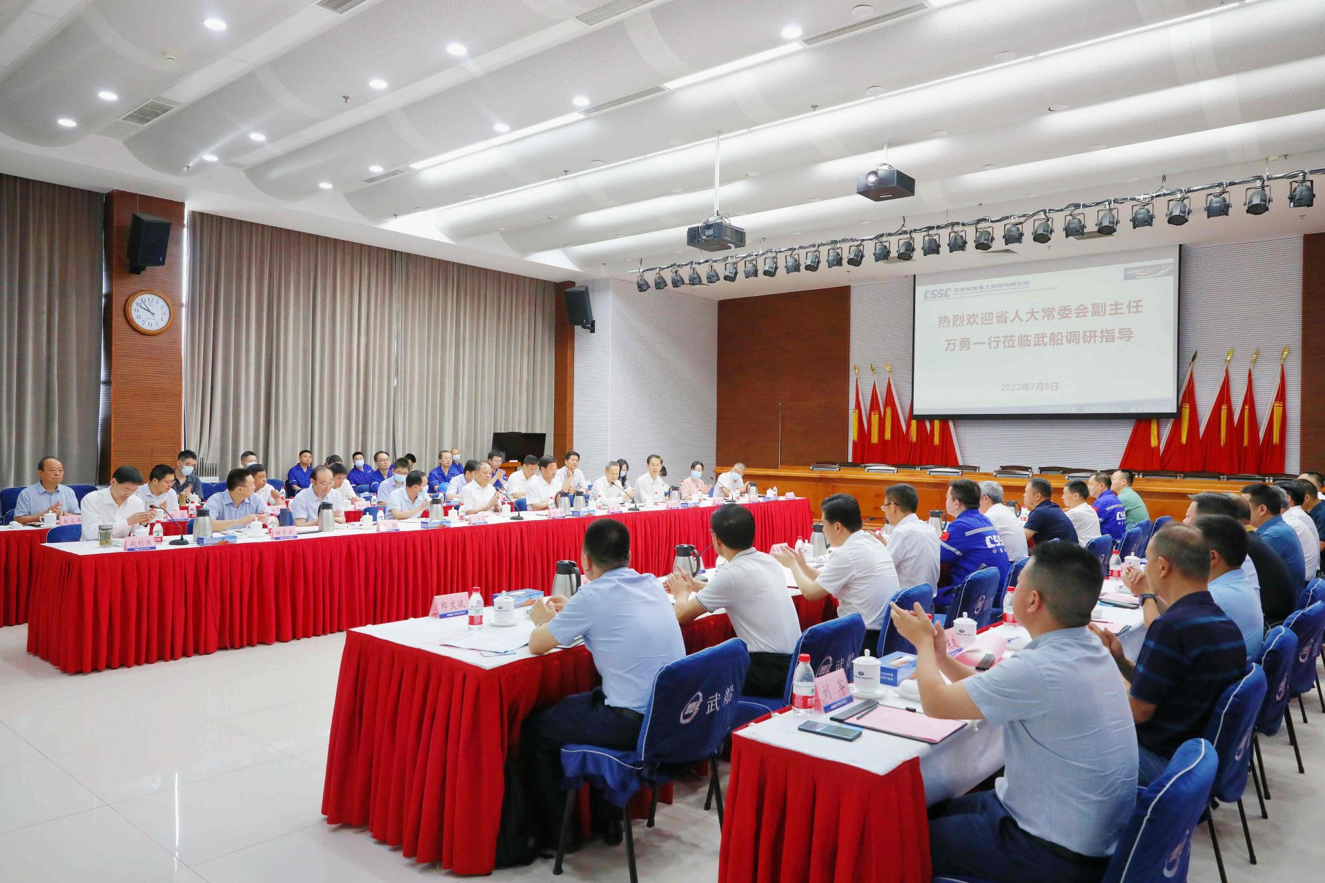 7月8日,省人大常委会副主任万勇到武昌船舶重工集团召开装备制造上下游企业座谈会,贯彻落实习近平总书记考察湖北重要讲话精神,推动深化拓展“解难题、稳增长、促发展”企业帮扶活动。