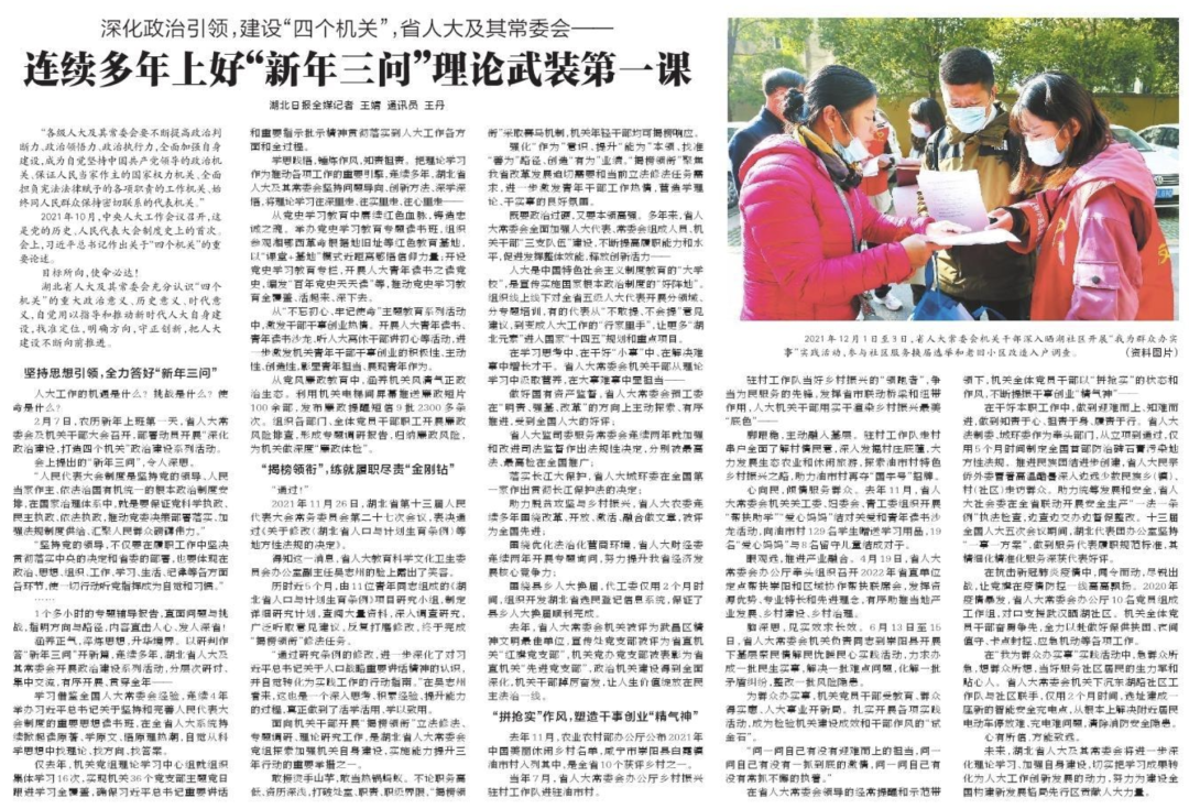 湖北日报|深化政治引领 建设“四个机关”——省人大及其常委会连续多年上好“新年三问”理论武装第一课