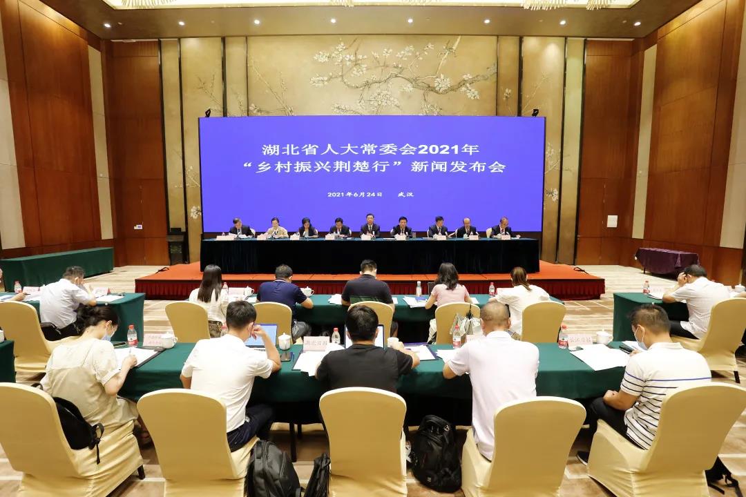 6月24日上午,湖北省人大常委会在汉召开新闻发布会,宣布2021年“乡村振兴荆楚行”正式启动。会上,省人大农业与农村委员会介绍了“荆楚行”的意义、内容和方式,省农业农村厅、省财政厅、省生态环境厅、省住房和城乡建设厅、省卫生健康委员、省乡村振兴局分别介绍了我省在改善农村人居环境、建设宜居宜业乡村的成效。