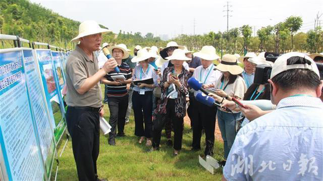 采访团当天前往武汉市江夏区庙山产业园花山矿区采访。花山矿区原本寸草不生的废弃采石场,通过清除危石、削坡整形、矿坑回填等方式,经过3年多治理,如今不仅栽上了近4万株杨树、楠木、桂花等绿色植物,有效缓解土壤流失问题,还消除了30多处崩塌、滑坡隐患点,增加了可利用土地,实现了对土地资源的再次利用。