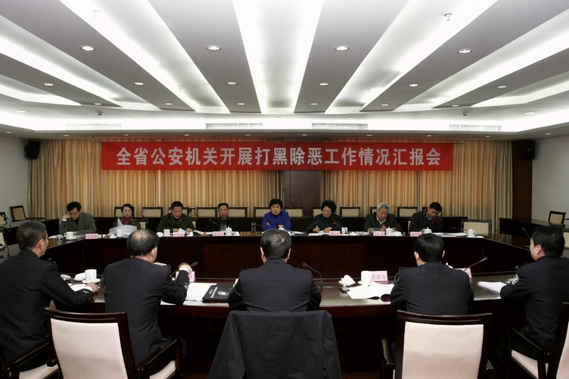 蒋大国对我省公安机关打黑除恶工作给予充分肯定。她要求,要深化认识,进一步增强打黑除恶工作的紧迫感和责任感。要严厉打击黑恶势力和犯罪的幕后指挥者、操纵者、保护者,认真研究防范、管理、控制黑恶犯罪的措施和办法,不断提高社会管控水平。要依法打击黑恶犯罪团伙及首要分子,明确黑恶势力判断标准,加强对基层工作的指导和与相关部门的协调,提高严打水平。要建立健全群防群治的工作体制和机制,营造打防管控的一体化、社会化工作格局。要加大打黑除恶工作的宣传力度,形成震慑效应。