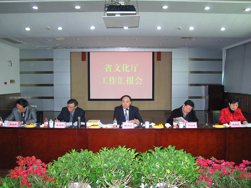 周洪宇在听取全省文化工作情况汇报后,充分肯定了近几年全省文化工作在公共文化体系建设、文化精品打造、文化基础设施建设、文化市场和产业发展、文物保护等方面取得的成绩。他指出,温总理在今年政府工作报告中指出“文化是一个民族的精神和灵魂,是一个民族真正有力量的决定性因素,可以深刻影响一个国家发展的进程”。文化是民族发展的命脉、灵魂和重要支撑,文化文明与国家发展有密切的关系。他强调,湖北的文化在全国有亮点、有地位和有影响,要在打造全国有影响的文化精品上下更大的功夫,要在公共文化基础服务体系建设完善上下更大的功夫,要在推动文化产业上新台阶上下更大的功夫。紧紧围绕全省“十二五”规划总体目标,打基础、抓服务、强管理、谋发展、重保护、促开放,用社会主义先进文化占领和巩固基层思想文化阵地,保障人民群众基本文化权益,活跃人民群众精神文化生活,促进经济社会协调发展,为湖北实现科学发展、跨越发展作出新贡献。(王磊)