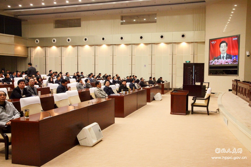大家表示,要认真学习、深刻领会,全面贯彻十八大报告精神,坚持党的领导、人民当家作主和依法治国的有机统一,在坚持人民代表大会制度,加强民主法制建设,着力推进政治建设和政治体制改革中发挥好人大职能作用,奋力推进“法治湖北”建设,为湖北的科学发展、跨越式发展作出更大贡献。