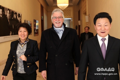 2013年3月25日,省人大常委会党组副书记、副主任赵斌同志陪同省委书记、省人大常委会主任李鸿忠同志会见欧洲议会对华关系代表团团长利凡里尼一行,并代表省人大常委会宴请该代表团。省人大民族宗教侨务外事委员会主任委员谭徽在等同志参加会见和宴请活动。