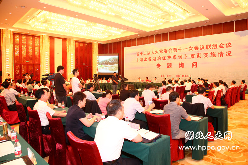 9月24日下午,省十二届人大常委会第十一次会议举行联组会议,对《湖北省湖泊保护条例》实施情况开展专题询问。省人大常委会党组书记、常务副主任李春明出席会议并讲话,副主任王玲主持会议。省人大常委会副主任田承忠、赵斌、周洪宇、王建鸣,秘书长乔余堂出席会议。
