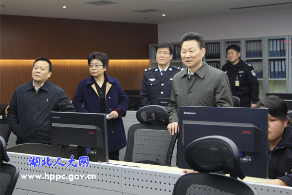 1月18日下午,省人大常委会副主任赵斌率调研组赴武汉市公安局交通管理局车辆管理所调研道路交通安全法及省实施办法贯彻实施情况。调研组听取了交管局负责人关于道路交通安全法律法规贯彻实施情况的汇报,实地察看了流动车管所、机动车检验监管调度中心、驾驶人考试监管调度中心、公共关系联动中心、微服务办公区、警营文化区和微访谈直播区,详细了解互联网+车驾管服务平台运行流程,并观看了武汉交警微信平台功能演示。