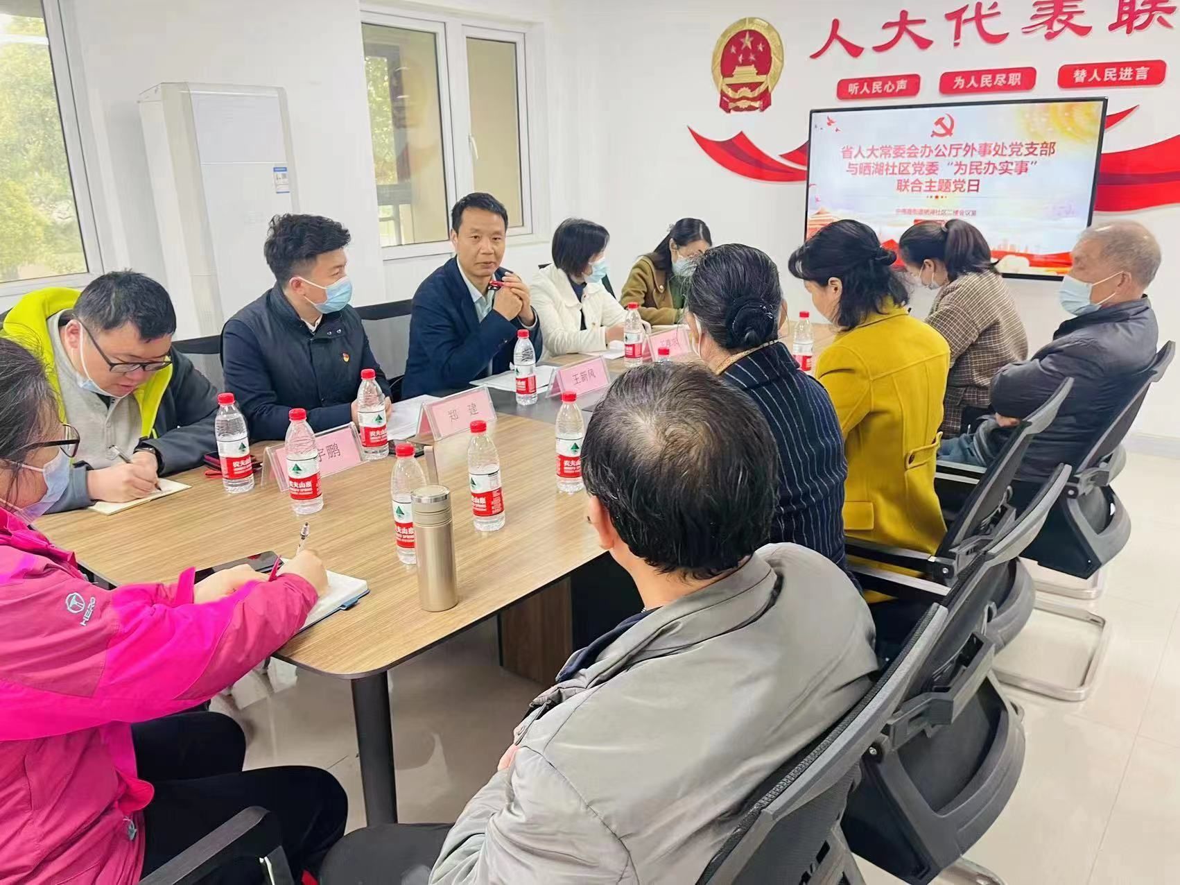 以“联合党建”引擎集聚组织合力,用“共同缔造”理念谋划社区新篇。3月24日下午,省人大常委会机关晒湖社区工作队外事处联建党支部与晒湖社区党委和社区群众党员一道,以支部主题党日为载体,以共同谋划为社区群众办实事年度项目清单为主要内容,联合开展党建联建活动。活动紧扣“做实下沉联建工作,推进基层共同缔造,夯实社区治理水平”主题,为下沉党建联建工作赋予全新内容,取得良好党建成效和工作实效。