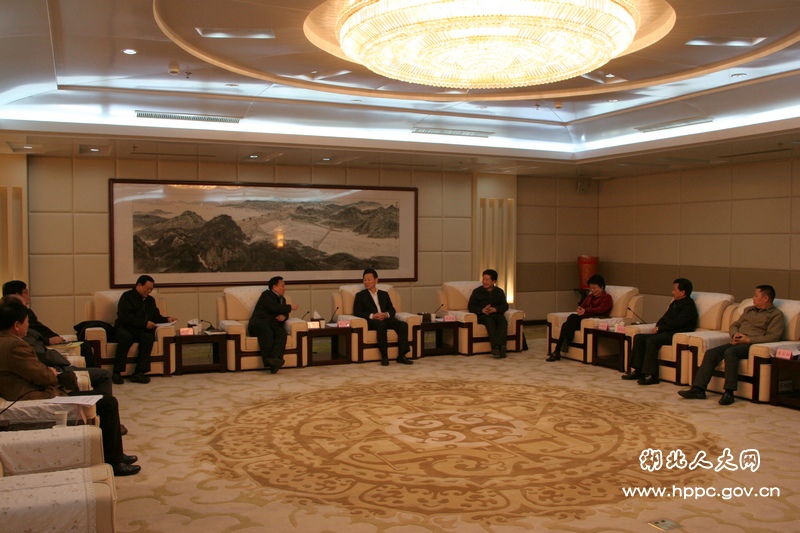 3月25日下午,省人大常委会副主任赵斌及内务司法委员会部分组成人员与武汉市人大常委会副主任胡绪鹍及内务司法委员会部分组成人员座谈,听取武汉市十三届人大内务司法委员会2013年工作要点的汇报。