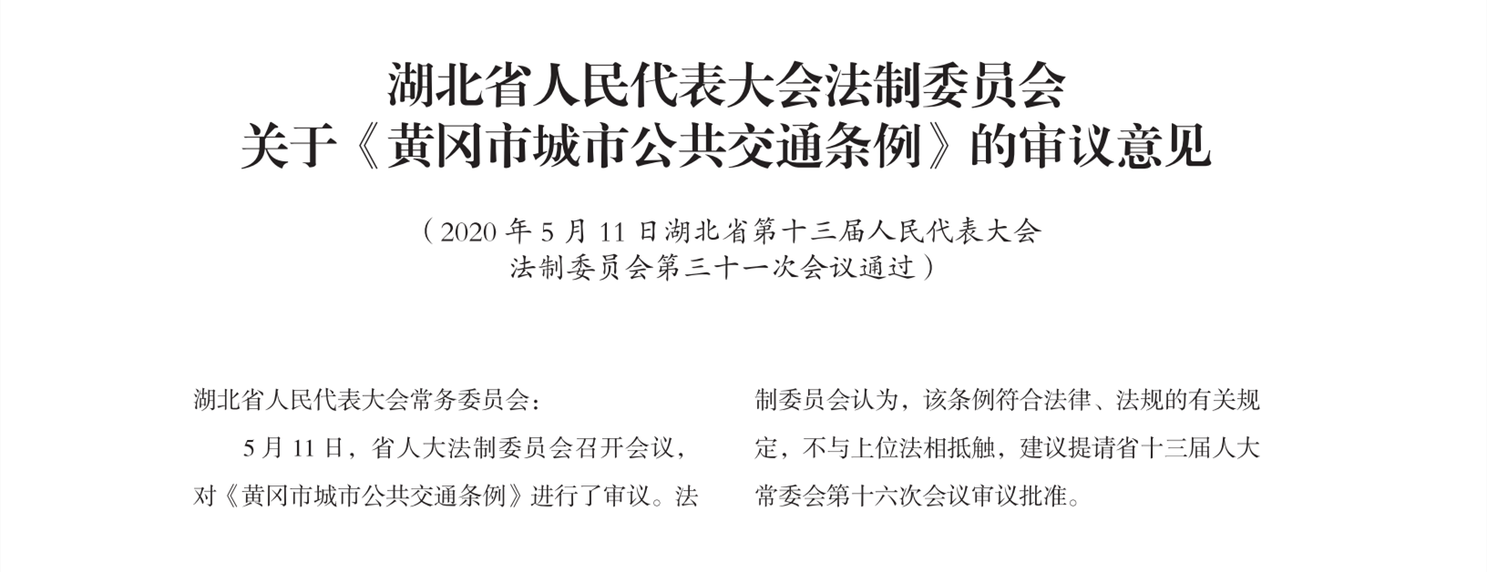 湖北省人民代表大会法制委员会关于《黄冈市城市公共交通条例》的审议意见