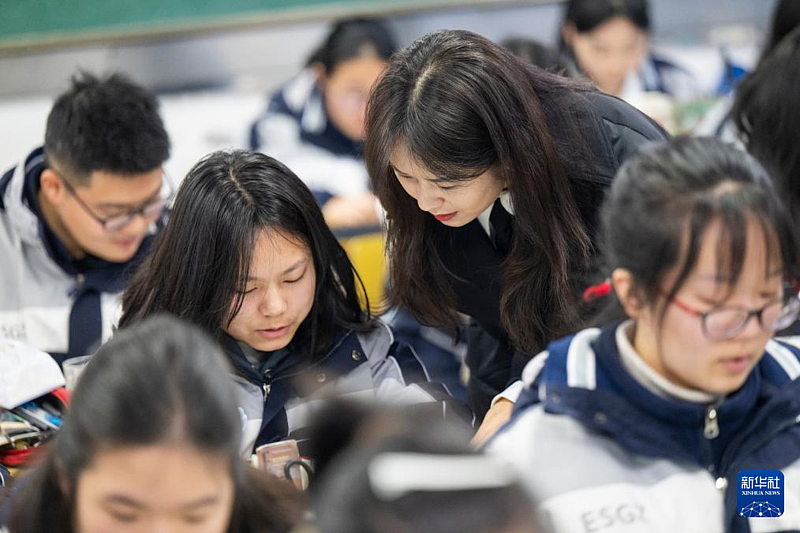 2月4日,在恩施土家族苗族自治州高级中学,张琼丽辅导学生复习。