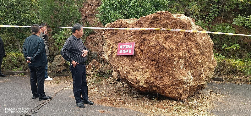 紧急处置,十吨巨石“拦路虎”被清除。人大代表张雨行至太极峡景区入口附近路段时,发现一处山体因雨水冲刷出现落石险情,一块约10吨重的巨石滚落至道路上,占据了大半幅路面,过往车辆只能小心翼翼避让,存在极大安全风险。“不能等不能靠,必须尽快清理!”现场人大代表立即分工,一方面安排专人在落石路段两端设置警示标志,引导车辆绕行,维护现场交通秩序;另一方面迅速联系镇应急办,协调挖机、运输卡车等机械设备赶赴现场。在机械轰鸣声中,人大代表们全程坚守现场指挥调度,提醒操作人员注意安全,经过2个多小时的紧张作业,滚落的巨石被成功破碎、装载并转运至安全区域,道路恢复畅通。