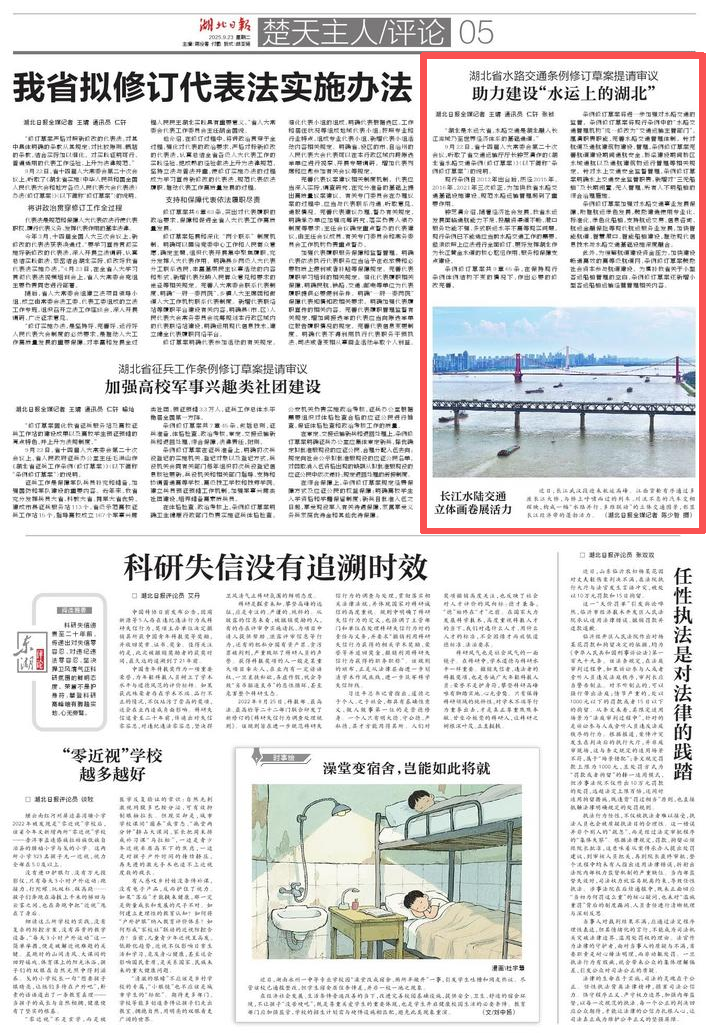 湖北日报|湖北省水路交通条例修订草案提请审议 助力建设“水运上的湖北”