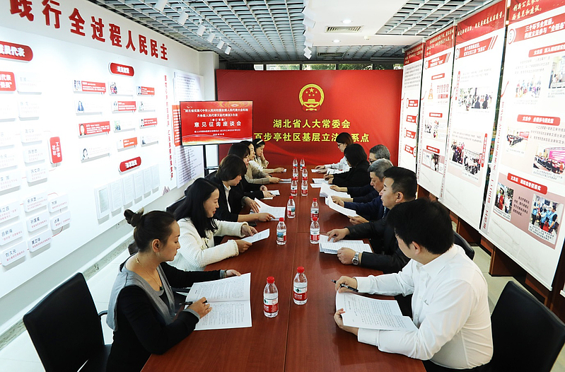 三、三个环节全贯通,构建立法参与“全链条”。将联系点的工作贯穿立法前、立法中、立法后全过程,形成“调研—参与—监督”的闭环管理。一是立法前精准调研探实情。聚焦养老服务、垃圾分类、城市管理、社区治理等民生热点领域,每月组织开展“人民议事厅”“代表三进”等代表活动,深入了解基层群众对立法工作的需求,整理后报送给立法机关,作为立法调研参考。二是立法中全程参与提良策。从立法草案起草到表决,立法联系点全程跟踪,针对不同阶段的草案条文渐进式提出建议,让民情民意在立法全过程充分体现。如在《湖北省电梯安全条例》制定修改的各阶段,社区先后组织召开居民议事会、专题研讨会、意见征询会5场,最终收集整理意见建议87条,其中关于老旧住宅电梯加装、物业责任划定等建议被立法机关采纳。三是立法后跟踪监督促落实。通过视察调研、参与执法检查、组织居民座谈等方式,主动收集了解民法典、武汉物业管理条例等法律法规在社区施行中的堵点难点问题,先后提出关于加强业主委员会建设、关于充分发挥社区工作者队伍专业化作用等相关人大代表建议,组织召开多场工作协调会,推动法律法规落实落细。