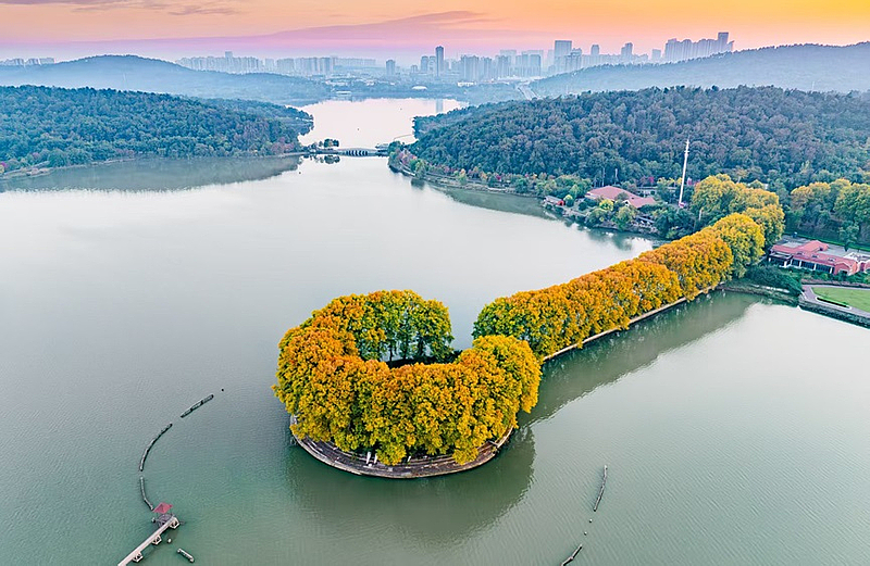 航拍武汉东湖风景区“金钥匙”。从空中俯瞰,这把由自然与时间共同雕琢的“金钥匙”,在深秋的暖阳下熠熠生辉。柯皓 摄