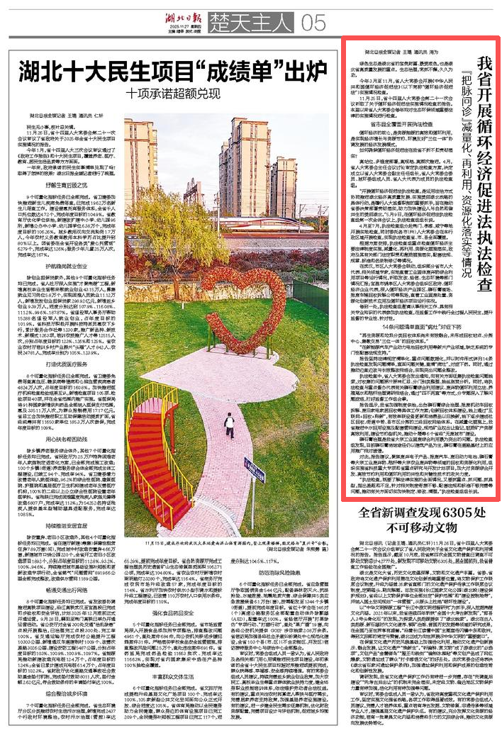 湖北日报|我省开展循环经济促进法执法检查 “把脉问诊”减量化、再利用、资源化落实等情况