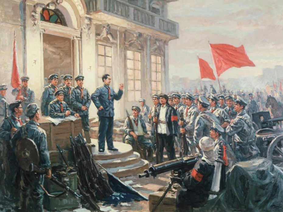 8月1日,以周恩来为书记的前敌委员会及贺龙、叶挺、朱德、刘伯承等人,率领党掌握或影响下的北伐军二万多人在南昌举行起义。10月初,起义军在南下广东途中遭到失败。保存下来的部队,一部分转移到广东海陆丰地区同当地农民武装汇合;另一部分在朱德、陈毅率领下转入湘南。南昌起义打响了武装反抗国民党反动派的第一枪,标志着中国共产党独立地领导革命战争、创建人民军队和武装夺取政权的开始。