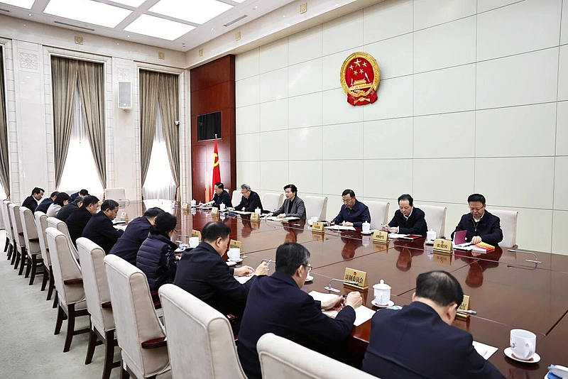 会议强调,全会部署了新征程社会主义民主法治建设的奋斗目标、实践要求,充分展现了人民代表大会制度蓬勃生命力。要坚持党的领导、人民当家作主、依法治国有机统一,坚持好、完善好、运行好人民代表大会制度,在实践中发展全过程人民民主。要不断提高立法质量,努力增强监督实效,充分发挥代表作用,稳中求进推动全省人大工作高质量发展。