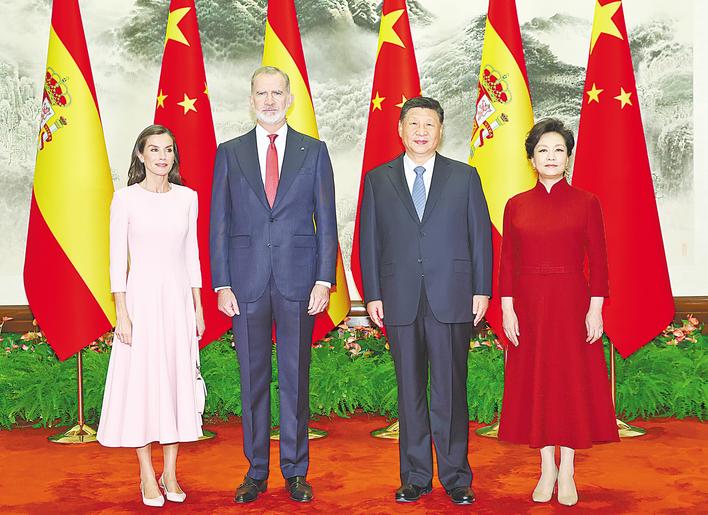 费利佩六世表示,很高兴在西中全面战略伙伴关系20周年之际对中国进行国事访问。西班牙同中国的友好交往源远流长,建交以来,两国始终相互信任、相互尊重,致力于共同发展繁荣。中国的发展成就举世瞩目,令人钦佩,特别是在脱贫和绿色低碳发展方面的成功经验值得借鉴。西班牙政府坚定不移奉行一个中国政策,支持维护国家领土完整,愿同中方推动两国全面战略伙伴关系不断向前发展,为两国人民带来更多福祉,为世界和平稳定作出更大贡献。中国企业投资有力促进了西班牙经济发展和绿色转型。西方愿同中方保持密切交往,把握中方实施“十五五”规划带来的重要机遇,加强经贸、工业、科技、绿色能源等领域合作。感谢中方对西班牙实施免签政策,愿密切文化、语言、旅游领域交流,增进人民友好。历史只能向前,不能倒退。西中两国在很多国际问题上理念高度一致,都支持多边主义,支持通过对话协商解决争端。西班牙高度赞赏习近平主席提出的四大全球倡议,愿同中方共同应对国际形势中的不确定性,维护国际贸易秩序,促进全球经济稳定发展。