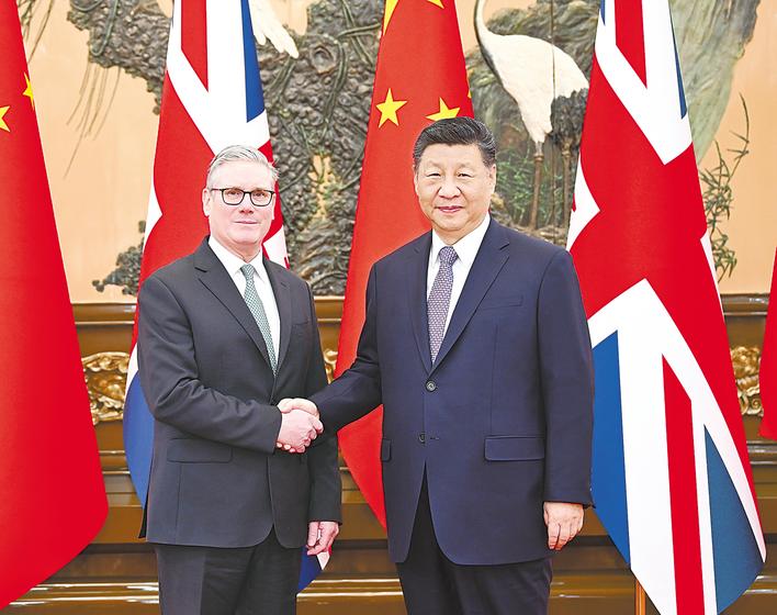 习近平强调,互信是国与国关系行稳致远的基础。中国始终坚持走和平发展道路,从未主动挑起过一场战争,从未侵占过别国一寸土地,中国无论怎样发展壮大都不会对其他国家构成威胁。中国的文化传统是“以和为贵”,追求的是“和而不同”。中英经贸合作的本质是互利共赢。今年是中国“十五五”开局之年,双方要拓展教育、医疗、金融、服务业互利合作,开展人工智能、生物科学、新能源和低碳技术等领域联合研究和产业转化,实现共同发展繁荣。希望英方为中国企业提供公平、公正、非歧视的营商环境。中英都是文化大国,都为人类发展进步作出重要贡献。双方要密切人文交流,进一步便利人员往来。欢迎英国政府、议会、地方各界多来中国参访,增加对中国全面、客观、正确的认知。中方愿积极考虑对英实施单方面免签。