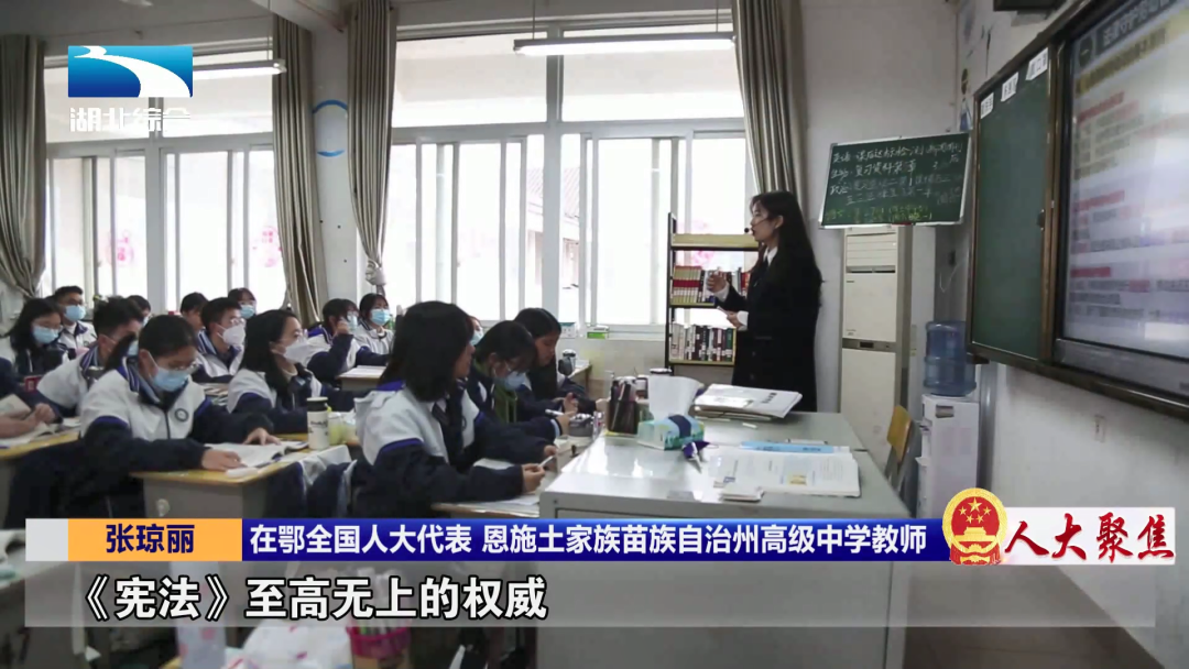 张琼丽是恩施土家族苗族自治州高级中学思政课老师,作为第十四届全国人大代表,回到学校后,结合自己的所见、所闻、所感,把大会元素融入到自己的课堂之中。