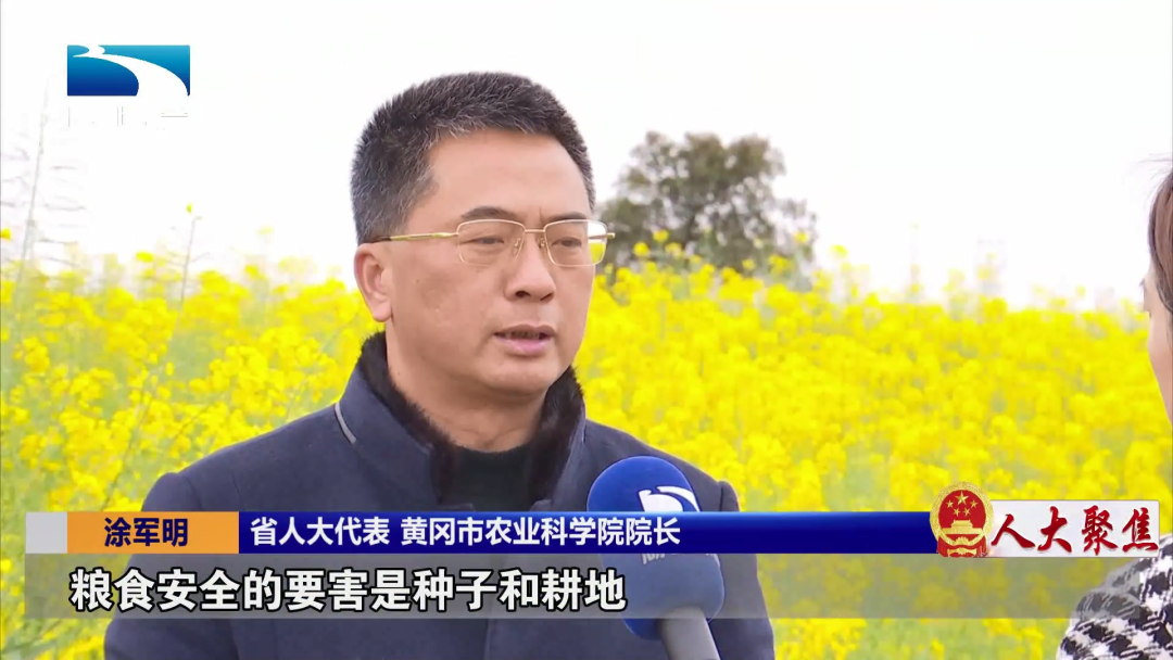 省人大代表 涂军明:粮食安全的要害是种子和耕地,习近平总书记要求我们把种子,牢牢掌握在自己手上,这几年我们围绕水稻科研出了很多优良的新品种,冈早籼11号,我们的四代晚稻玺优447等一系列品种,为我们提供双季稻提供了优质的种源。