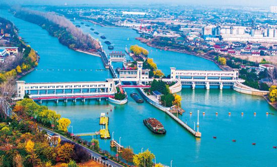 “十五五”时期,要研判把握水资源长远供求趋势、区域分布、结构特征,统筹国家骨干网、省市县水网协同建设,加快推进南水北调后续工程高质量发展,加快骨干输配水通道和重要调蓄结点建设,优化水资源配置格局。图为2024年12月13日拍摄的位于江苏省扬州市江都区的南水北调东线一期工程运盐闸、邵仙套闸、邵仙闸洞(无人机照片)。 新华社发 周社根/摄